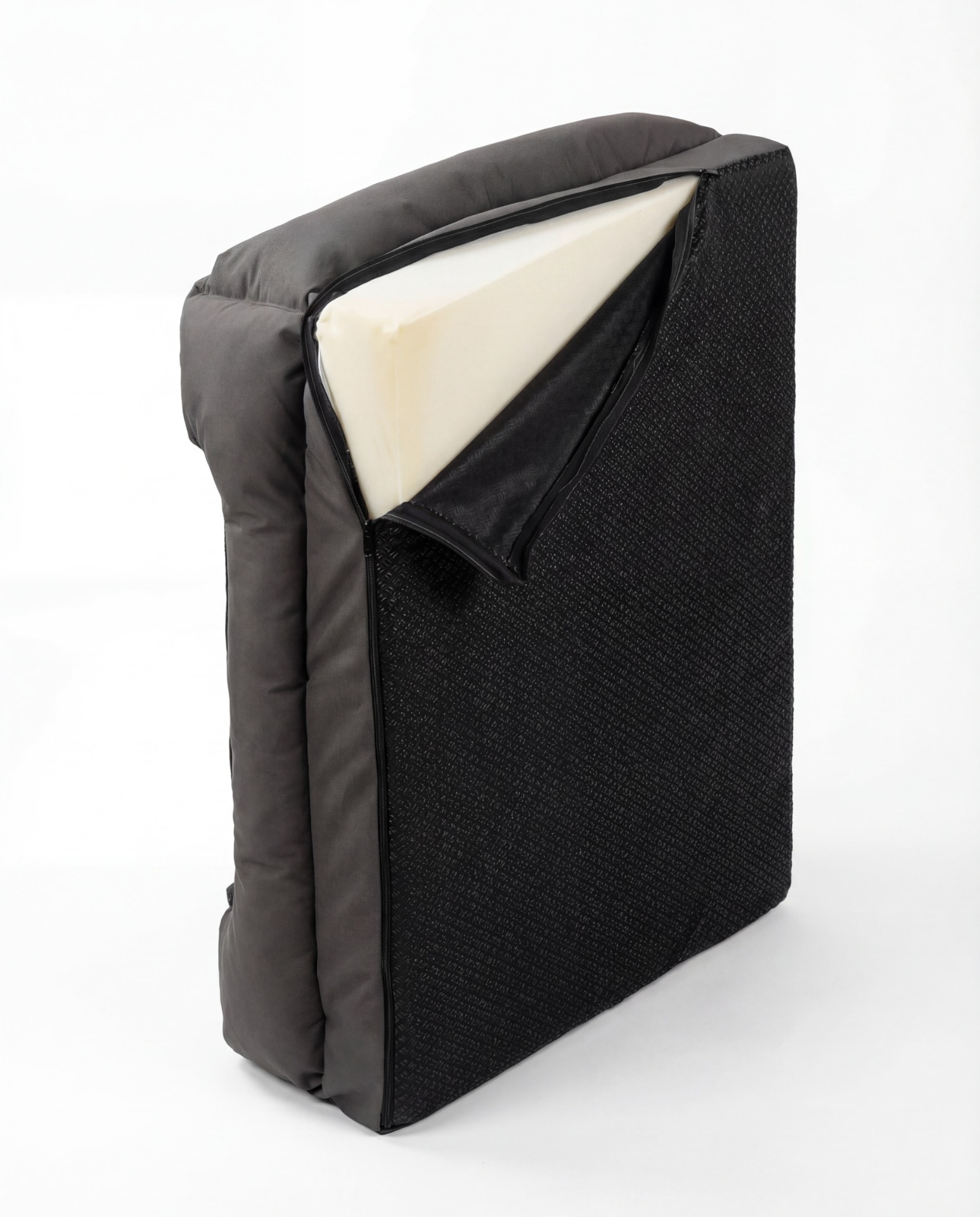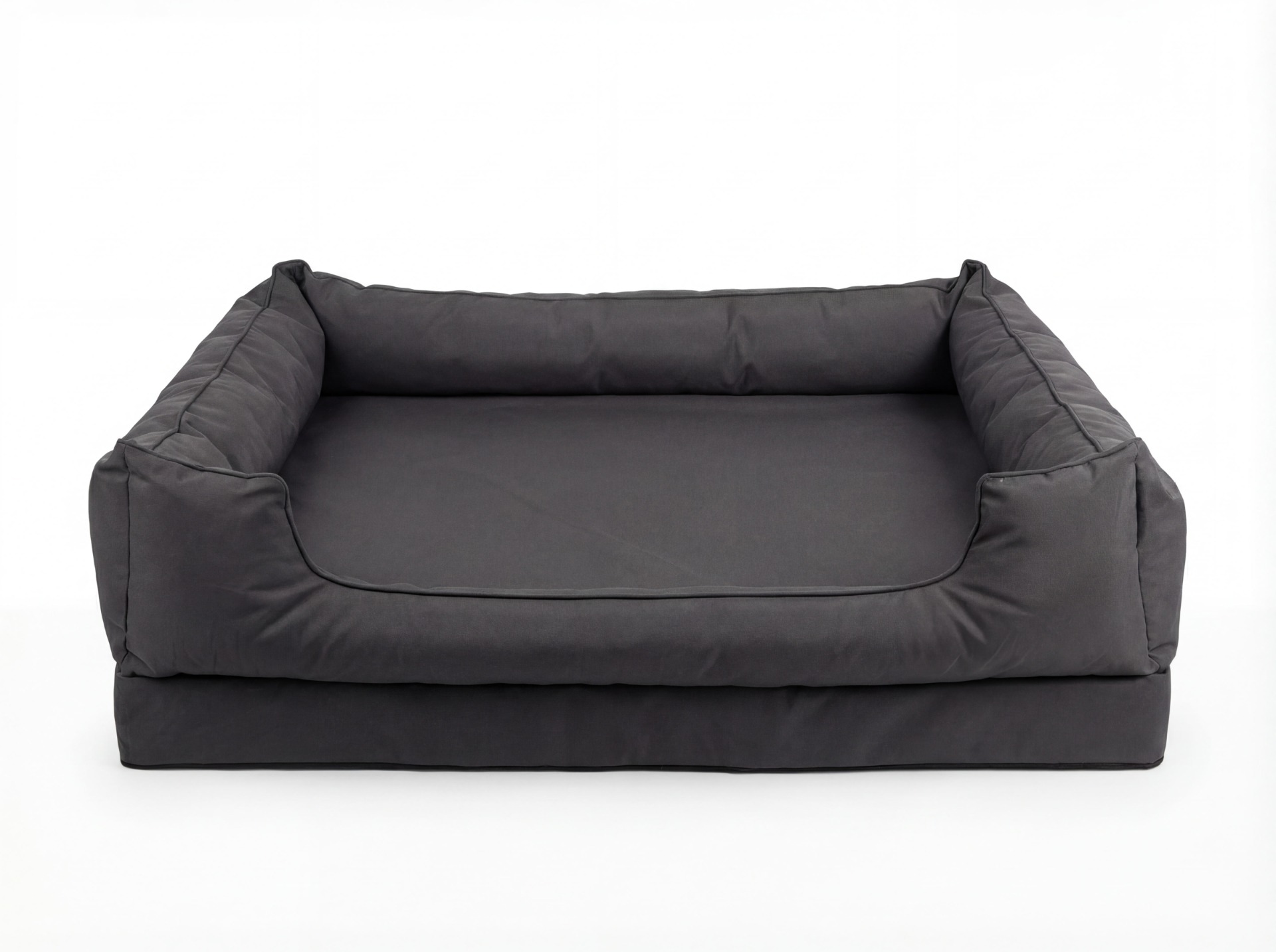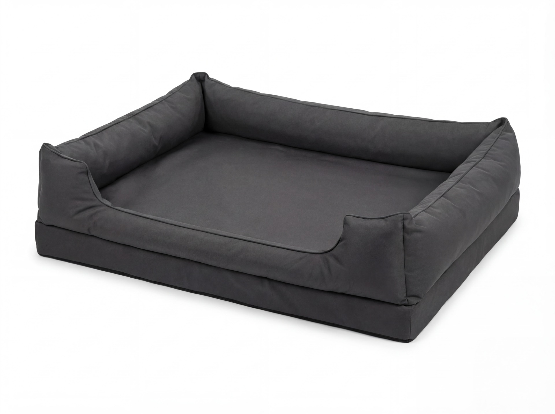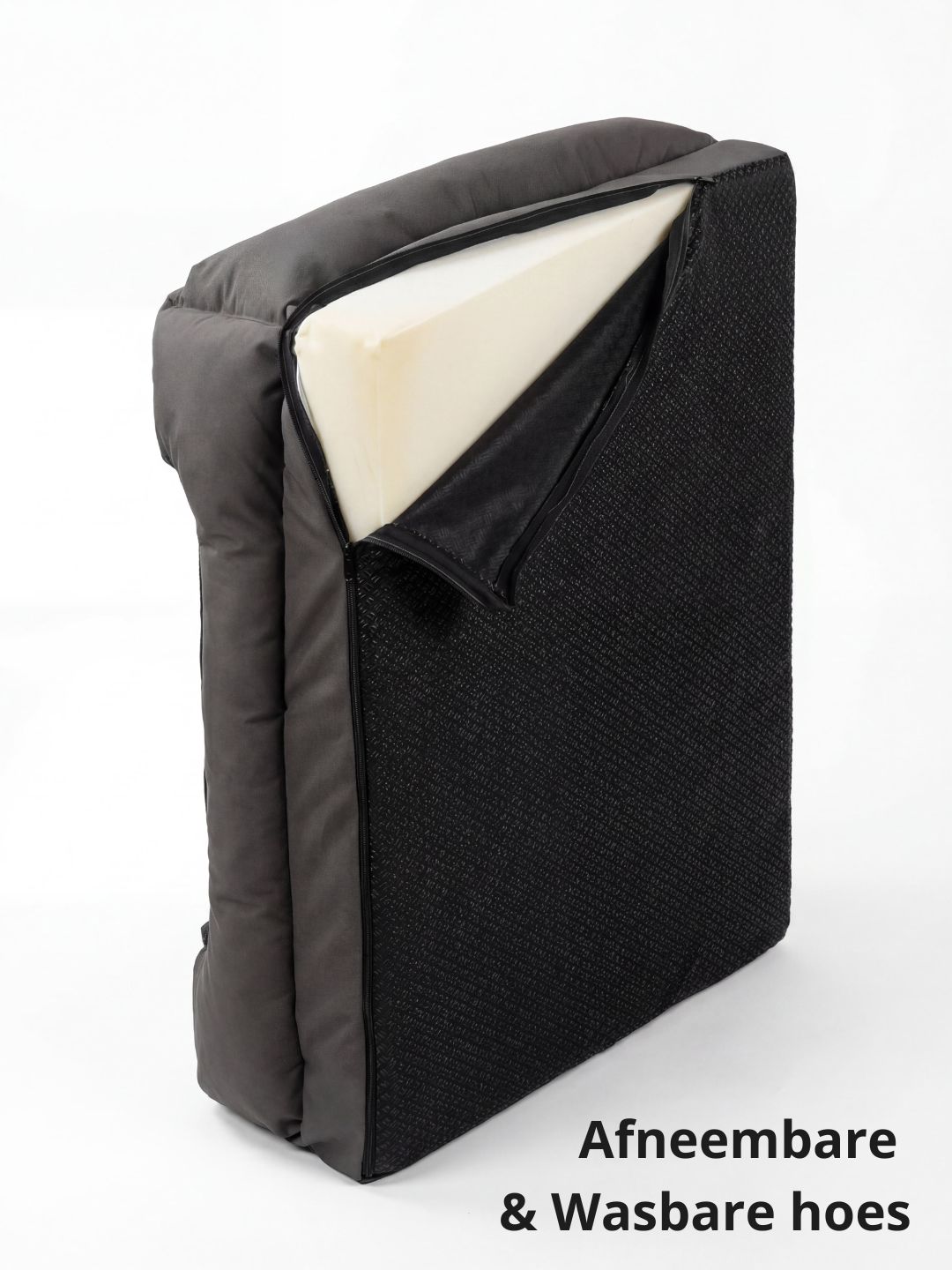 De verhoogde randen geven je hond een veilig nestgevoel en ondersteunen nek en gewrichten, terwijl het hoogwaardige schuim zijn vorm behoudt — ook bij intensief gebruik. De afneembare hoes gaat zo in de wasmachine, en het strakke Scandinavische design past naadloos in elk interieur.